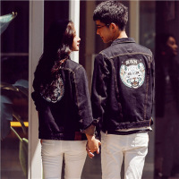 莞馨(wanxin)新款2016新款情侣装韩版复古男士牛仔衣夹克外套男 学生虎头印花夹克
