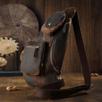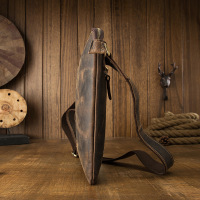 2017新款手工男士胸包休闲斜挎包牛皮复古多功能男包疯马皮个性牛角包