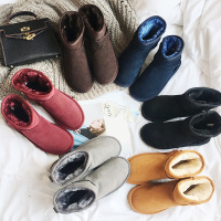 头层牛皮女雪地靴冬季新款保暖百搭防滑羊羔毛两穿复古短靴