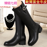 秋冬新款骑士靴皮毛一体全牛皮羊毛雪地靴粗跟真皮长靴女高筒