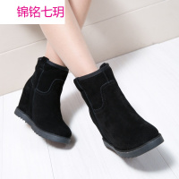 2018新款平底韩版真牛皮内增高雪地靴女保暖短筒靴子女 厂家批发