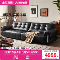 全友家居现代简约头层牛皮黑色真皮沙发客厅大小户型直排式沙发