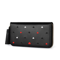 钱包女韩版潮个性长款拉链手拿包女时尚百搭牛皮皮夹钱夹 黑色