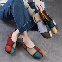 真皮复古民族风头层牛皮撞色单鞋女2026春季拼接乞丐鞋软底妈妈鞋