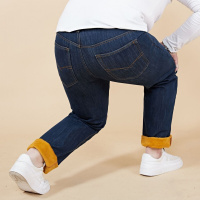 大码男装男士加绒加厚牛仔长裤肥胖男士加肥加大牛仔裤特大码男裤