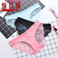 锦铭七玥无痕内裤女冰丝面料低腰蕾丝性感棉档少女高中生理内裤