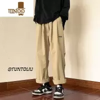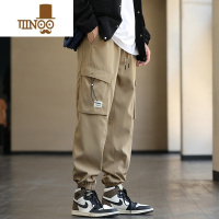 YANXU秋季男裤子宽松抽绳直筒长裤卡其色潮牌锥形休闲裤男款
