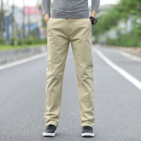 YANXU薄款男士净版休闲裤2022韩版青年简约中腰卡其色西裤男长裤