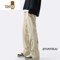 YANXU日系卡其色工装裤子男士夏季薄款感宽松阔腿直筒休闲长裤男生