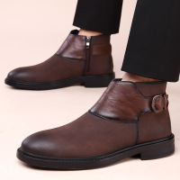新款马丁靴英伦尖头高帮正装男士皮靴商务加绒短靴潮流切尔西靴男