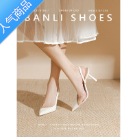 SUNTEK水钻尖头高跟鞋女2023年新款细跟扣带单鞋气质风浅口白色包头凉鞋