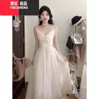 YIBUSHENG法式纯欲白色吊带连衣裙子女季高级感气质收腰海边度假仙女长裙