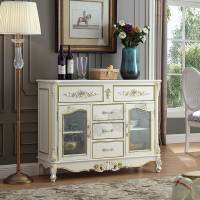 美式实木餐边柜 欧式白色收纳柜储物柜多功能客厅茶水柜 雕花描金