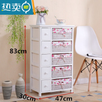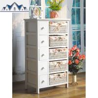 实木田园收纳柜 白色床头柜简约床边柜客厅柜藤编抽屉斗柜 储物柜 三维工匠