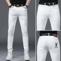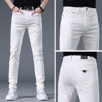 夏季新款高端白色牛仔裤男士潮牌修身小脚弹力休闲长裤子男款