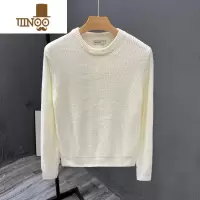 啄木鸟2025秋新款白色圆领绞花毛衣男士冬季大码针织打底衫线衣服