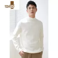 YANXU半高领毛衣男修身百搭加绒加厚毛衫男士白色打底中领针织衫
