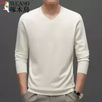 啄木鸟春季新款桑蚕丝打底针织衫纯白色羊毛V领套头内搭薄毛衣男