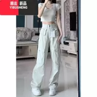 YIBUSHENG美式复古白色工装裤女春秋新款直筒宽松阔腿高腰显瘦休闲牛仔裤子