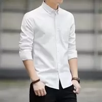 牛津纺白色衬衫男士长袖修身韩版休闲青年衬衣薄款男装春秋季
