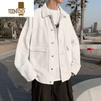 YANXU男士夹克文艺潮流白色工装外套潮牌宽松翻领休闲牛仔衬衫春季