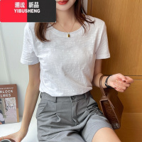 YIBUSHENG竹节棉t恤女短袖2024年新款宽松百搭白色上衣纯色体桖薄款