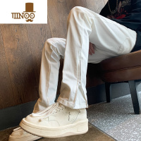 YANXU白色修身牛仔裤男秋季美式vibe风裤子痞帅拉链开叉提档微喇直筒裤