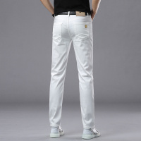 春夏高端欧货白色牛仔裤男士修身小直筒休闲弹力纯棉男长裤