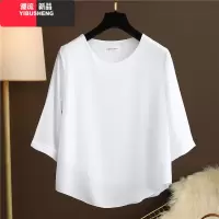 YIBUSHENG夏装秋款雪纺衫五分袖加肥加大码女装宽松显瘦洋气遮肚上衣衬衫