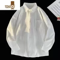 YANXU白色长袖衬衫男韩版潮牌宽松痞帅衬衣胖子大码小众纯色外套