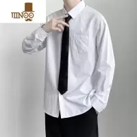 YANXU白色长袖衬衫男女日系潮牌炸街潮流简约纯色上衣送领带情侣装衬衣