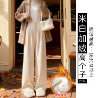 白色糯米裤女秋冬季新款垂感休闲宽松慵懒小个子加绒阔腿裤子
