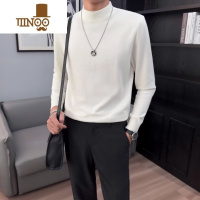 YANXU白色半高领毛衣男款纯色打底衫内搭潮牌轻熟风毛线衣针织衫