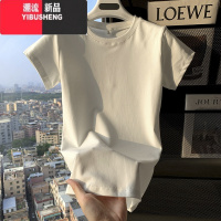 YIBUSHENG2024新款短袖t恤女正肩白色季半高领上衣服修身体恤打底衫内搭