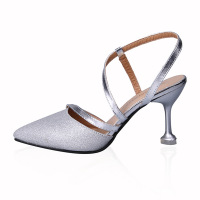 SUNTEK银色水钻后空高跟鞋2023夏新款包头细跟性感ins风绝美百搭女凉鞋