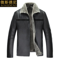 免费试穿 春秋装皮毛一体中年翻领真皮皮衣男绵羊皮加绒加厚皮草貂绒爸爸外套2024冬装新款轻奢皮草真皮大码外套男装
