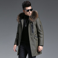 可拆卸内胆尼克服 正品海宁真皮外套男皮草中长款春秋装新款加厚水貂大衣男春秋装工装防水外套派克服水貂毛领大衣外套男