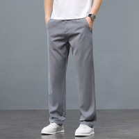 男士夏季薄款弹力灰色牛仔裤直筒宽松大码中年爸爸装舒适通勤裤