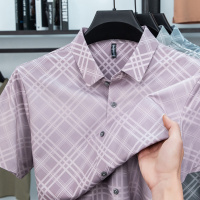 桑蚕丝商务男士衬衫天丝短袖上衣免烫夏季真丝桑蚕丝无痕衬衣可