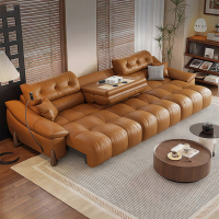 虔度意式电动多功能沙发床两用可伸缩客厅复古头层真皮沙发