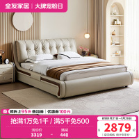 全友家居真皮床现代简约头层牛皮主卧大床分段靠包双人床皮艺床