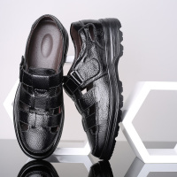 2026夏季新款真皮休闲男式凉鞋魔术贴透气平跟大码洞洞镂空皮凉鞋