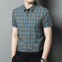 2026夏季短袖梭织衬衫男商务休闲翻领格子印花舒适透气男士衬衣