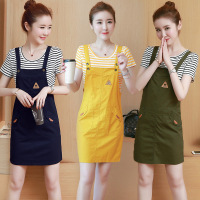 薇侣2017新品背带裙两件套女短袖连衣裙可爱学院风韩版夏新款女裙子套装裙