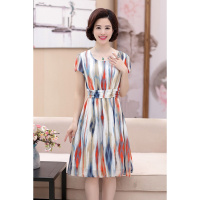 妈妈装中年夏装短袖连衣裙40岁中老年女装时尚条纹印花女裙子