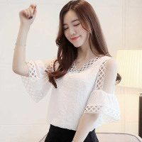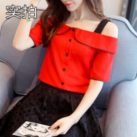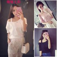 棉质 短袖设计感小众夏季新款韩版宽松T恤女漏肩性感棉上衣女