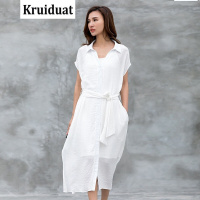 Kruidvat欧美女装长款衬衫式春夏显瘦翻领短袖棉麻裙子大码宽松黑色(付款后5天发货)均