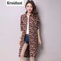Kruidvat2017新款时尚印花过膝开衫女春秋长款衬衫气质女长袖打底上衣Z002棕均码