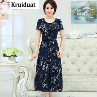 Kruidvat2017夏新款中老年女式连衣裙修身碎花长款妈妈装