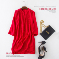 重工刺绣春夏新品复古桑蚕丝女装七分袖上衣古典工艺长款衬衫